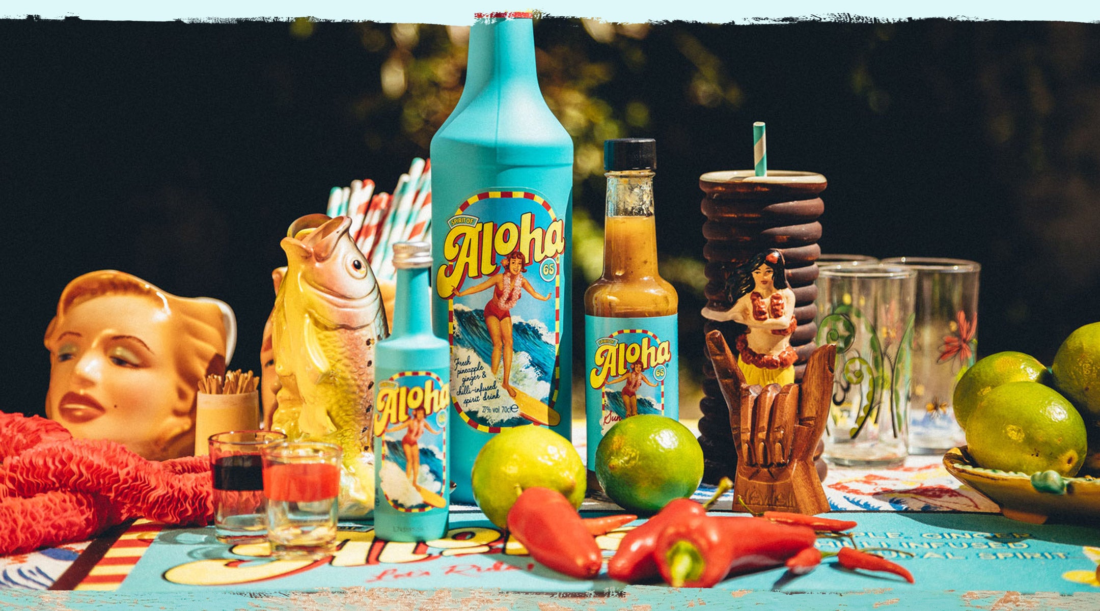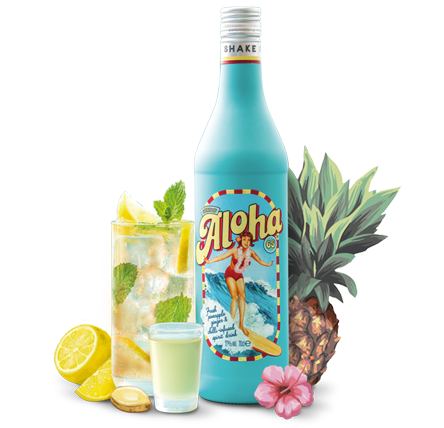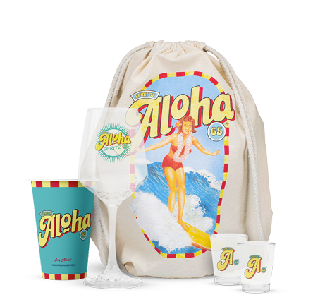 Looking for something unpretentious, fun and tropical? Well, “Aloha!” to you, you’re in the right place. Our 27% ABV all-natural tropical liqueur was conceived in Hawaii may moons ago and is made from just six tropical fruits, herbs and spices. One sip and Aloha 65 will transport you to a tropical paradise of sun, sea, sand and surf. Our iconic, surfing Lola and her buddy Al, live life to the full and after a day riding the waves, like nothing better than relaxing in their favourite beach shack bar with an Aloha 65 in hand. Why not join them?